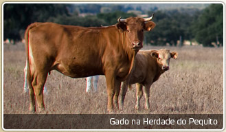 O gado Charolês encontra-se na Quinta do Sande, em Évora, onde as pastagens são mais ricas; as vacas cruzadas estão na zona de Pavia; e o gado Mertolengo nas zonas de charneca, em Coruche. Em qualquer dos casos, a exploração é feita em regime extensivo com encabeçamento adequado a cada zona, tendo sempre a preocupação de preservação do solo e montados. Os bezerros são vendidos durante todo o ano: os charoleses e cruzados são vendidos ao desmame; os Mertolengos são engordados. |